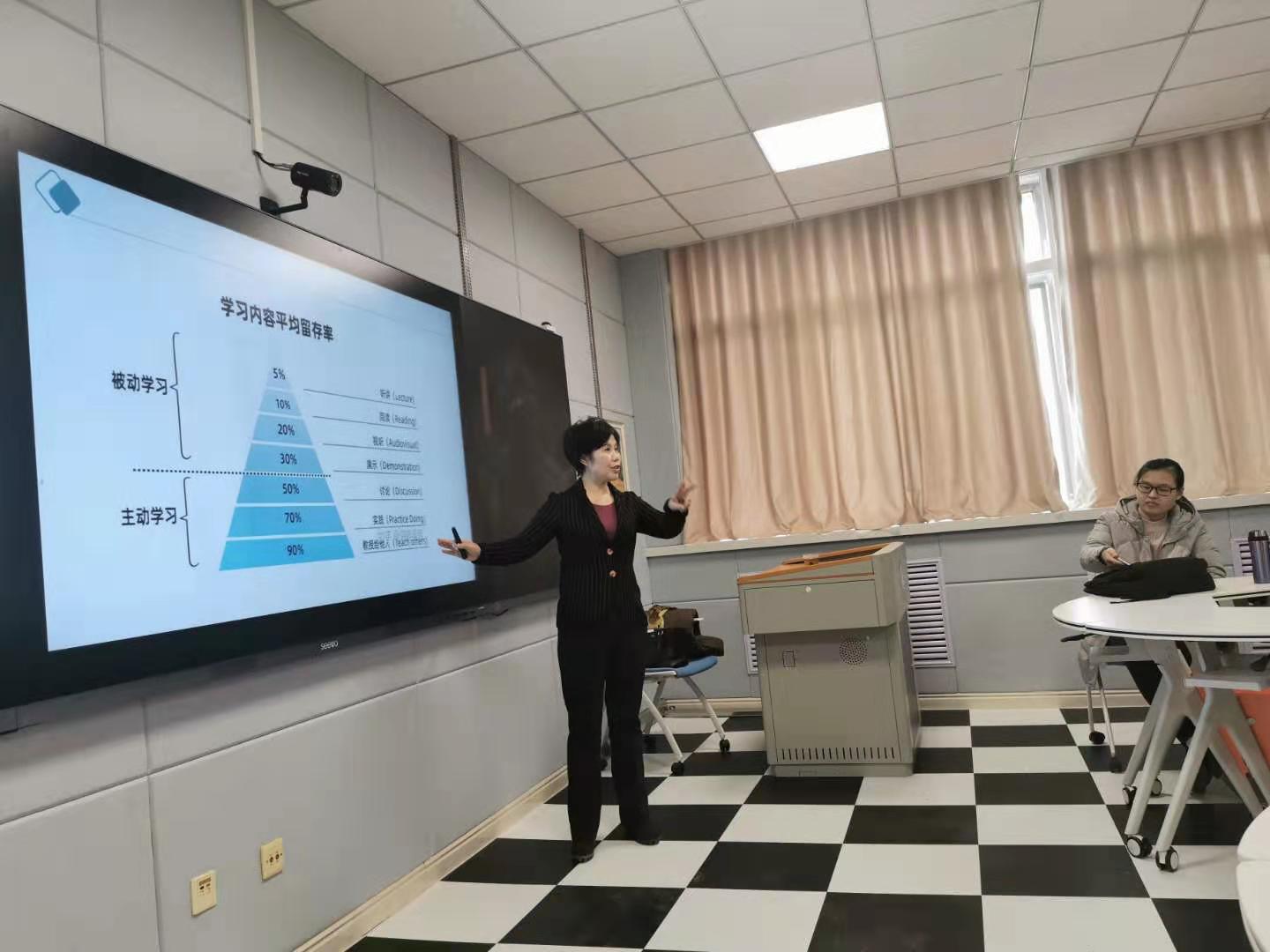 本次工作坊聚焦课程评价考核体系的建构,从考核指标多元化、考核主体多元化和考核过程多元化有机融合的角度揭示了多元化考核评价的必要性。曹献英首先指出,我们的教学面临“过去未去,未来已来”的新挑战,传统评价体系的弊端日益显现,以考试为中心的学生评价模式忽视了对学生素质和能力的考核,这不能满足教学改革的需要。课程教学迫切需要转变评价观念,建立新型的多元化评价体系。然后围绕我国大学生学习现状、学习考核评价的现状、考核评价的发展历程、多元化考核评价理论基础等方面,从考核内容、考核方式、考核主体、发展趋势等维度分享了多元化考核评价体系的构建路径,对于新形势下如何培养创新型人才给出了自己的理论解读。最后,她通过多元化考核评价案例与实践的分享,强调翻转课堂不只是简单的视频教学,它不是老师把原来的讲课录成视频,让学生在家里学习。真正的翻转课堂是一种互联网和移动互联网条件影响下真正的教与学模式创新。它是按照布鲁姆教育目标分类原则,进行课前任务单和课堂活动的思考设计,通过“线上”借助云班课平台和“线下”借助实体课堂相结合的方式,学生在课前任务单的指导下自主学习,课上学生围绕老师设计的一系列活动,合作探讨学习并展示小组学习观点的新型教学模式。
