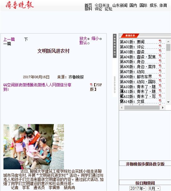 【齐鲁晚报】报道建筑工程学院开展“文明新风进农村”活动
