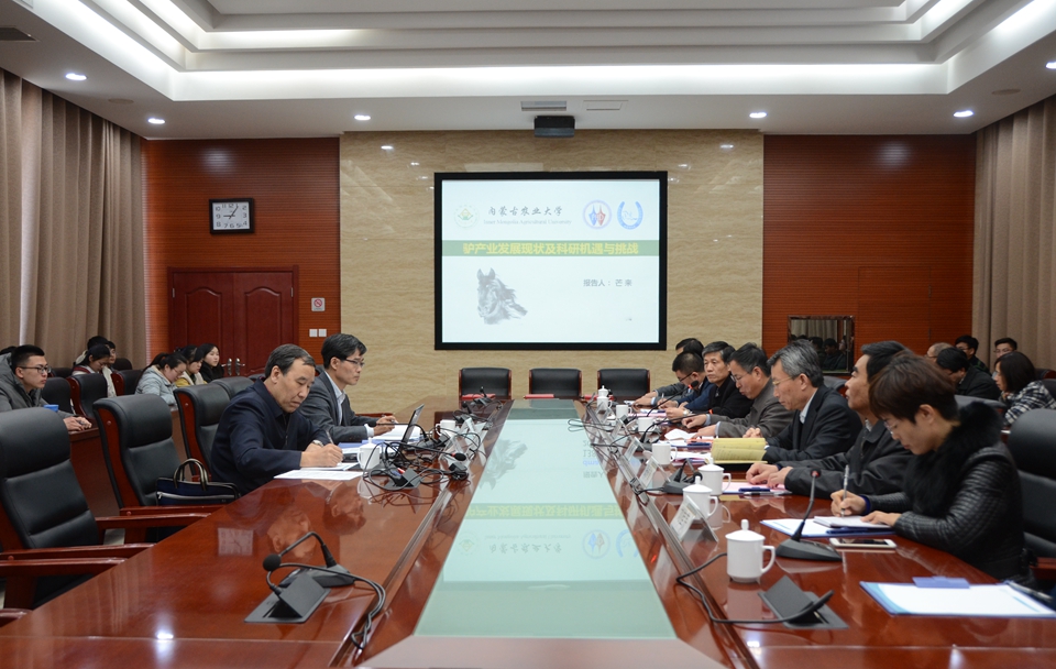 签约仪式结束后,芒来教授作了题为“驴产业发展现状及科研机遇与挑战”的报告。他从国内驴学理论研究及产业发展现状、驴产业化发展以及取得的业绩成果、乐鱼平台,乐鱼平台(中国)驴学研究院今后发展机遇三个方面对驴产业发展现状及科研发展情况进行了深入分析,并建议我校要充分发挥自身优势,与各高校和研究所协同发展;加强实验室建设,为研究提供条件;凝练研究方向,加强队伍建设。