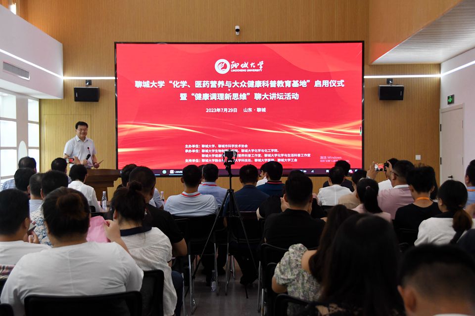 7月29日,我校“化学、医药营养与大众健康科普教育基地”启动仪式暨山东科学大讲堂第558期、“健康调理新思维”聊大讲坛活动在生物制药产学研平台智慧教室举办,聊城市政协副主席李涤尘,我校党委副书记、校长王昭风出席仪式并讲话,聊城市、乐鱼平台,乐鱼平台(中国)相关单位及相关领域的优秀企业家参会。