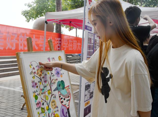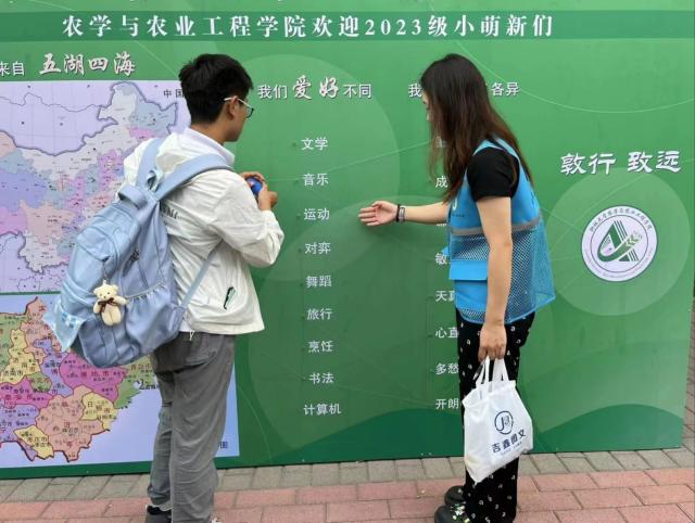 学校花式宠“新”还不止于此,学校制作了精美的校园地图、新生服务手册和十余篇新生攻略,各学院迎新工作站特色纷呈,体育学院舞狮表演引来了众人驻足围观;美术与设计学院手绘指纹打卡处颇具特色;文学院用手写书签表达对未来的憧憬;学院介绍、考研风采展示板比比皆是,学长学姐们的优秀表现,在新生心里埋下了一颗颗种子。