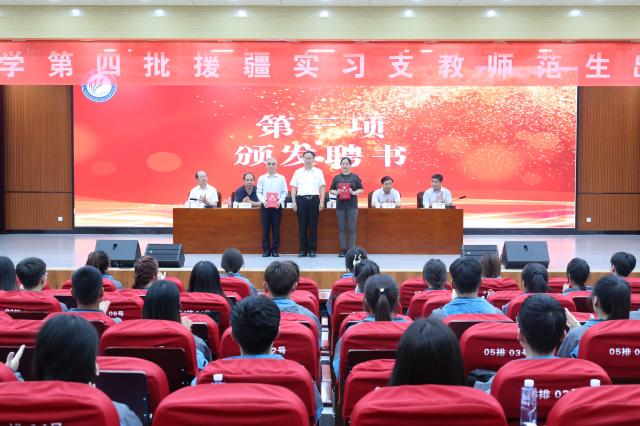 党委教师工作部(人力资源处)、党委学生工作部(学生工作处)、教务处、团委、支教师范生所在学院相关负责人,第四批援疆实习支教团全体师生以及部分在校生代表参加出征仪式。