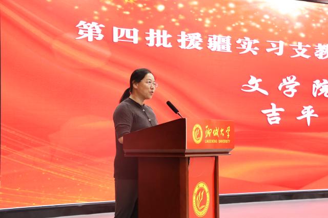 赵明吉代表学校对实习支教师范生提出期望和要求,要胸怀“国之大者”,担当强国使命;勤勉踏实工作,练就过硬本领;弘扬优良传统,再显聊大担当。他勉励即将奔赴西部支教的同学,要以教育家为榜样,大力弘扬教育家精神,牢记为党育人、为国育才的初心使命,树立“躬耕教坛、强国有我”的志向和抱负,为强国建设、民族复兴伟业作出新的更大贡献。学校各部门要高度重视援疆实习支教工作,从应用型人才培养的目标定位出发,进一步明确责任、强化协同,优化管理、做好保障,深化实习支教内涵,打造实习支教品牌,助力提升学校应用型人才培养质量。