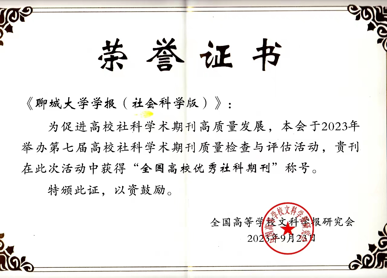 全国高校社科学术期刊质量检查与评估,是经教育部社科司批准的全国期刊界权威评优活动,由国家一级学会、全国高等学校文科学报研究会组织评选,综合考量期刊的政治标准、学术水平、社会影响、编辑质量、出版质量等五项指标,全国参评社科期刊近两千家。此次《乐鱼平台,乐鱼平台(中国)学报(社会科学版)》被评为“全国高校优秀社科期刊”,是学术界、期刊界对学报办刊质量和影响力的充分肯定。