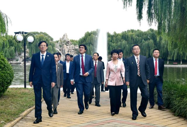 9月28日,吉尔吉斯共和国副总理埃迪尔·拜萨洛夫在山东省人民政府外事办公室党组书记、主任蔡先金,聊城市委书记李长萍陪同下来校考察访问。我校党委书记关延平,党委副书记、校长王昭风,党委副书记房增福陪同考察。