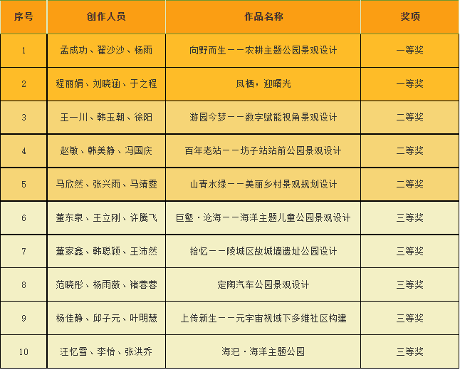 近日,第四届山东省大学生环境设计创新创意大赛正式落下帷幕。我校园林、风景园林专业学子在于守超、翟付顺、李慧勇、赵红霞等教师团队的指导下,凭借扎实的专业知识和设计创新能力荣获一等奖2项,二等奖3项,三等奖5项,获奖数量和层次均刷新了我校参加该项赛事的历史纪录。