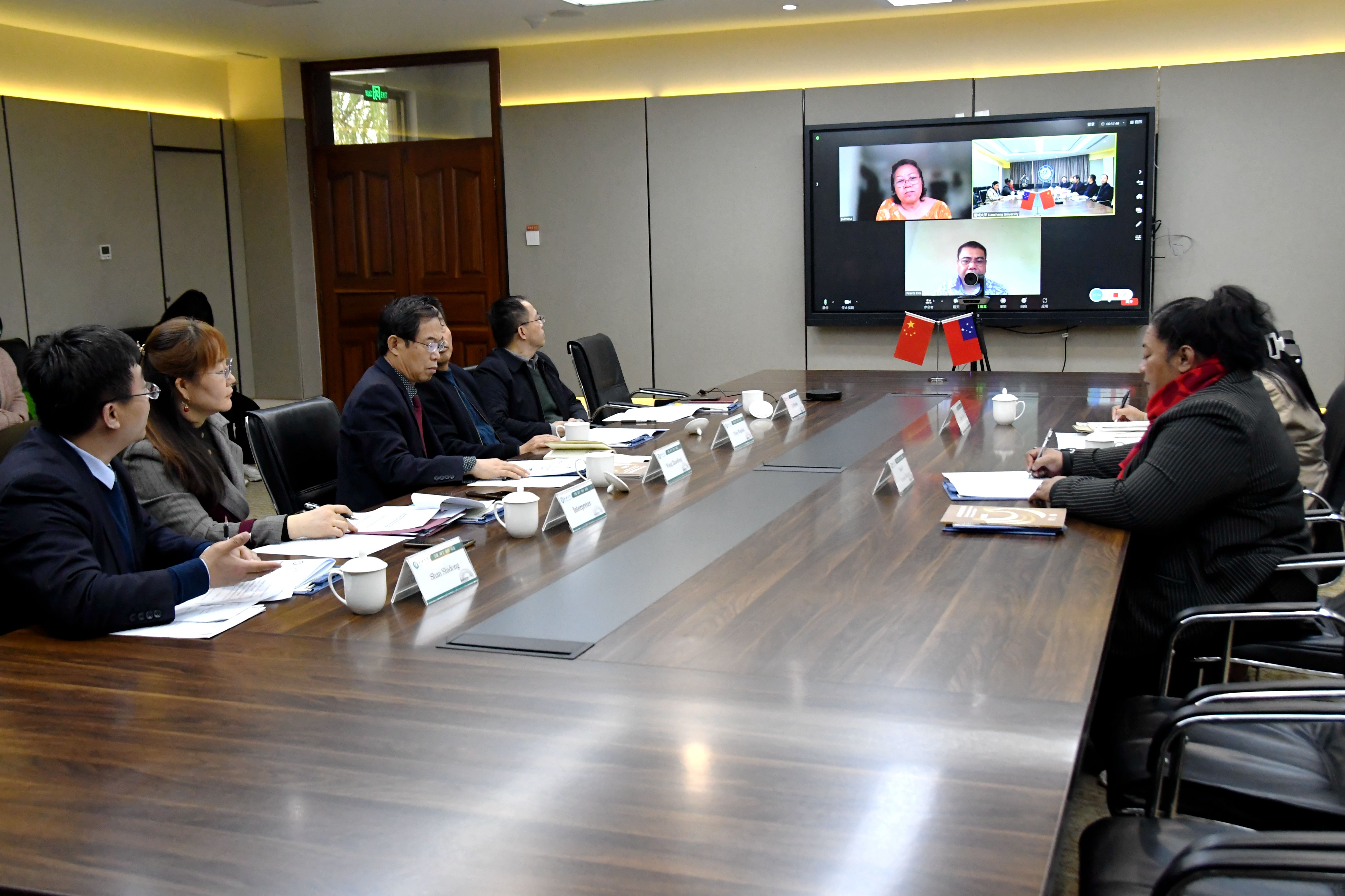 萨摩亚国立大学人文学院院长路易斯·米露、国际事务项目协调员西奥拉娜·托莱、萨摩亚国立大学孔子学院中方院长陈万会、乐鱼平台,乐鱼平台(中国)外国语学院院长李维滨、国际合作交流处副处长单士栋参加会议。