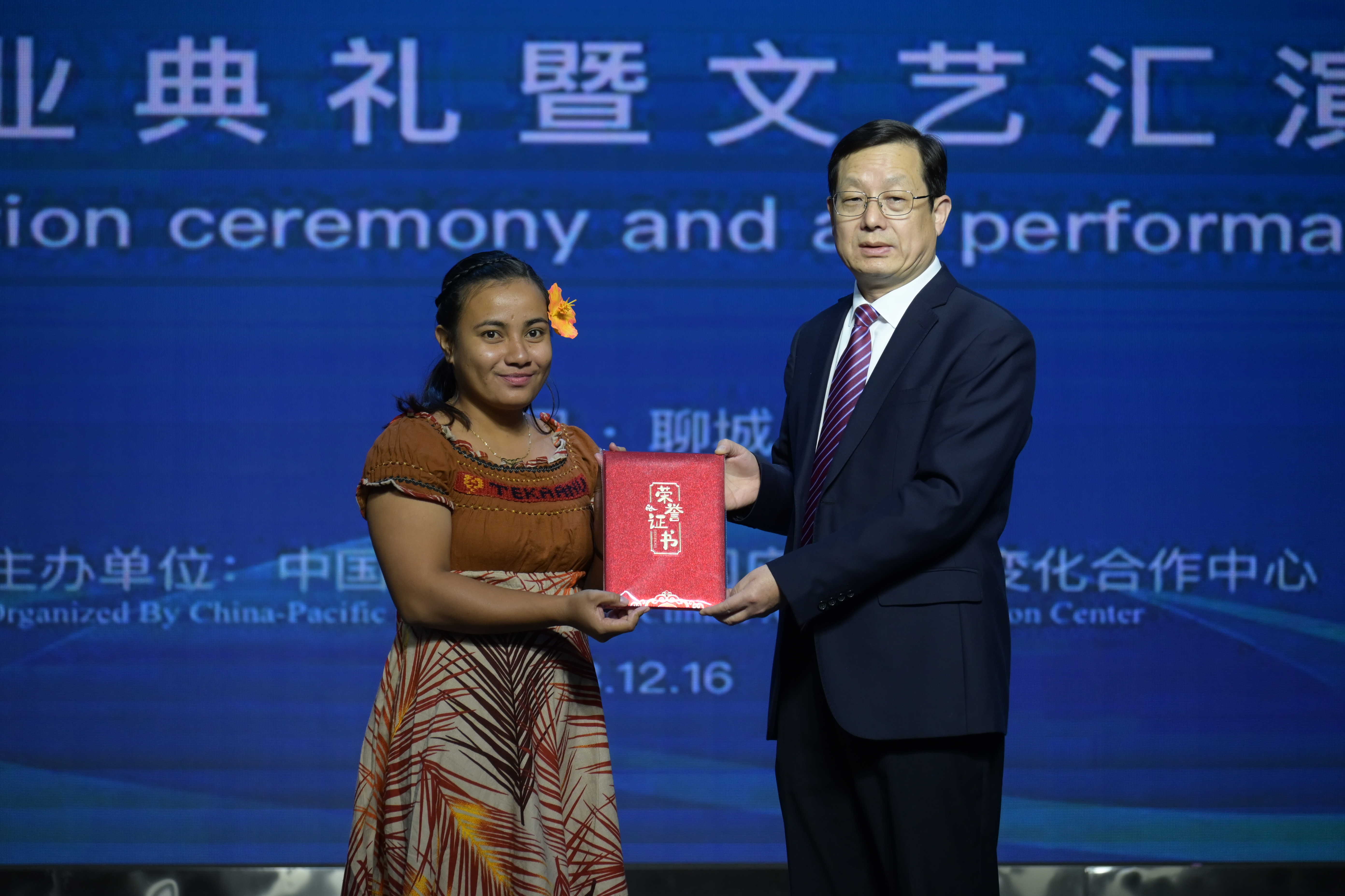 12月16日,由中国一太平洋岛国应对气候变化合作中心主办的第二届中国—太平洋岛国应对气候变化培训班结业典礼暨文艺汇演在乐鱼平台,乐鱼平台(中国)音舞学院演出大厅举行。校党委副书记房增福、聊城市政府外事办主任陈海蓉出席,并为学院颁发结业证书和纪念品。结业典礼由中国-太平洋岛国应对气候变化合作中心常务副主任陈德正主持。