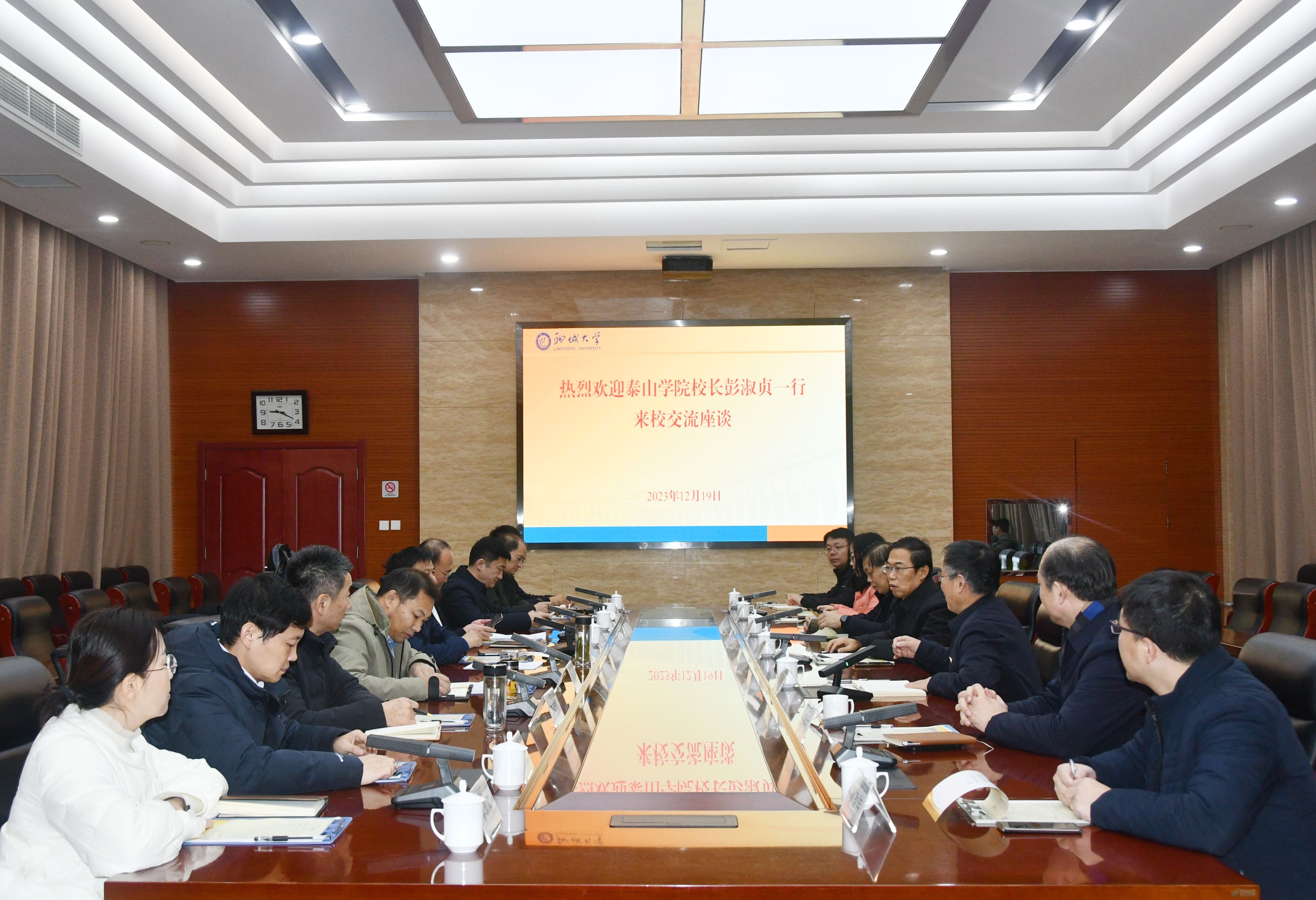 12月19日,泰山学院党委副书记、院长彭淑贞一行来我校调研,校党委书记关延平,校党委副书记、校长王昭风,校党委副书记胡海泉与客人座谈交流。