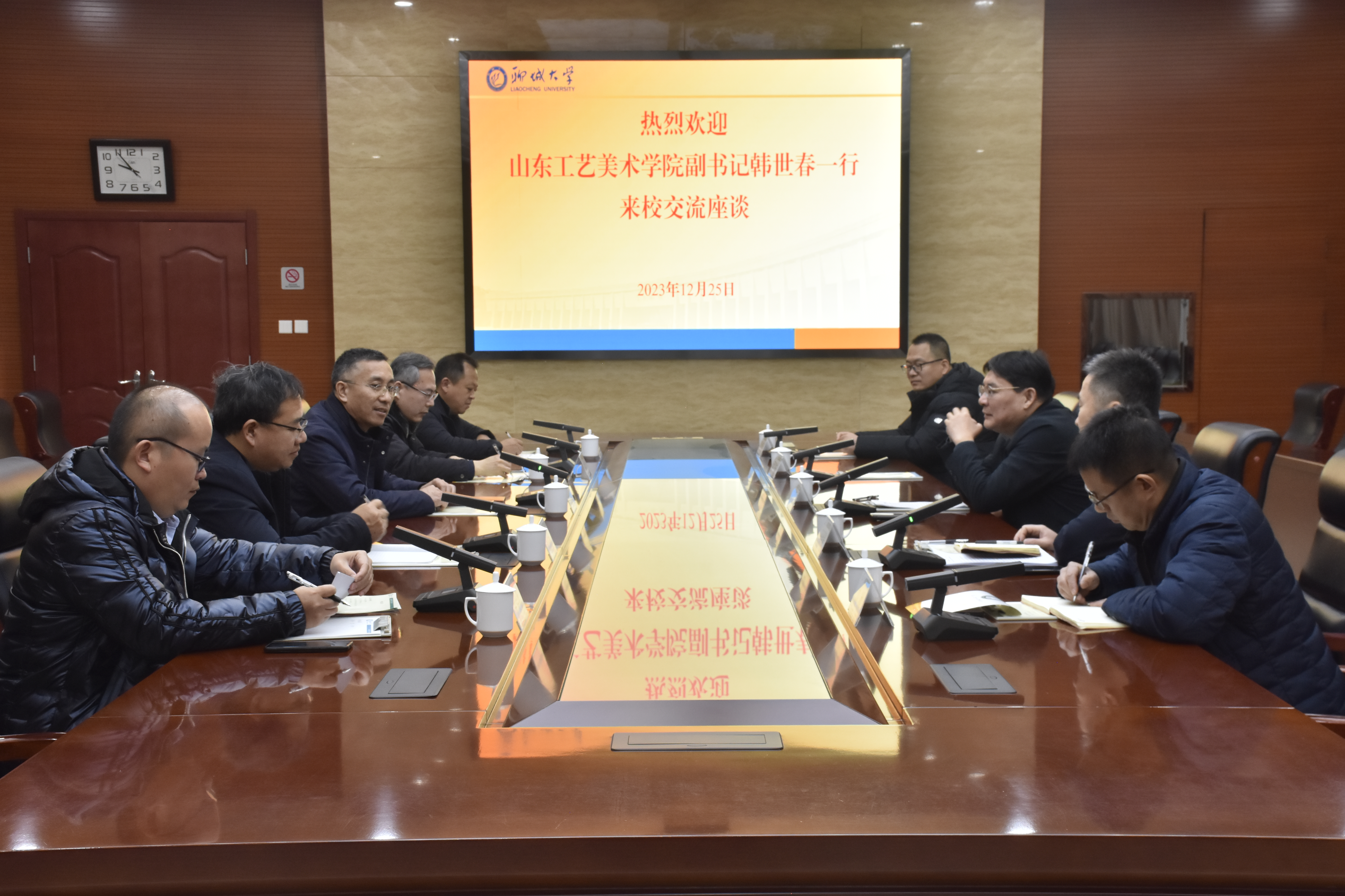 12月25日上午,山东工艺美术学院党委副书记韩世春一行5人来访,我校党委书记关延平,校党委常委、副校长白青与客人座谈交流。