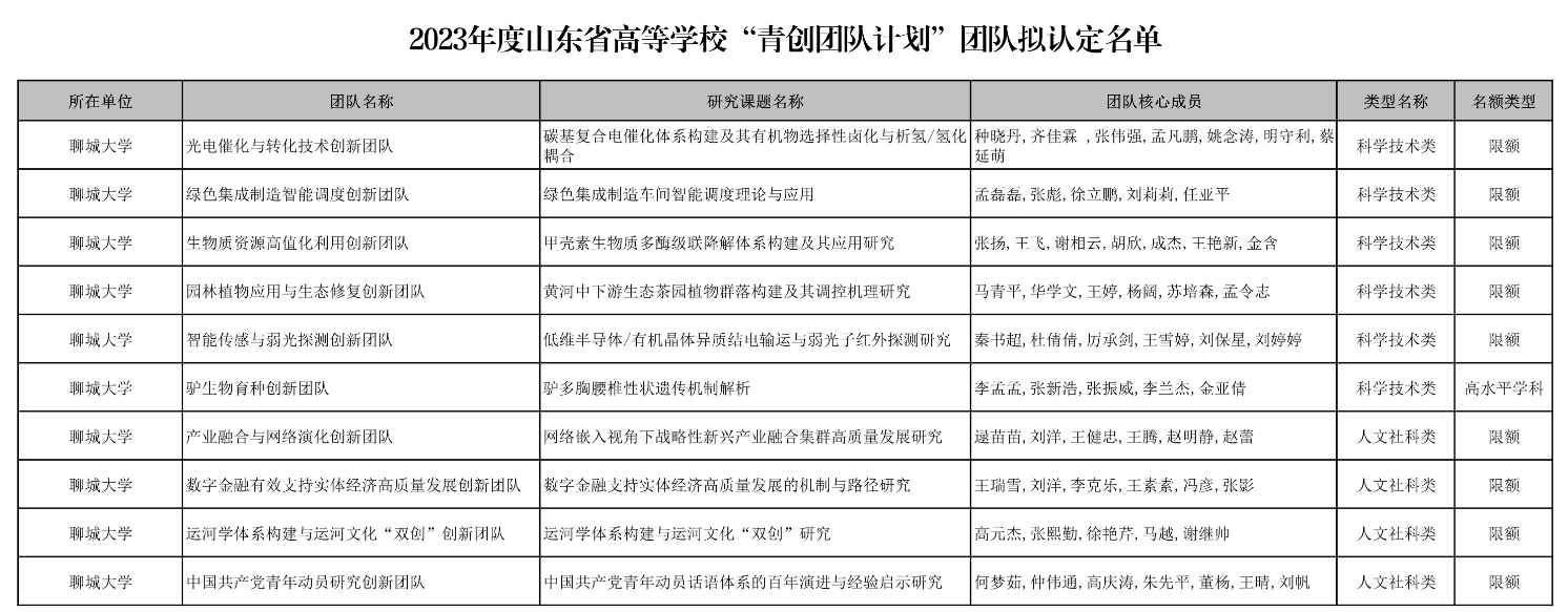 乐鱼平台,乐鱼平台(中国)10个团队获批2023年度山东省高校 “青创团队计划”立项