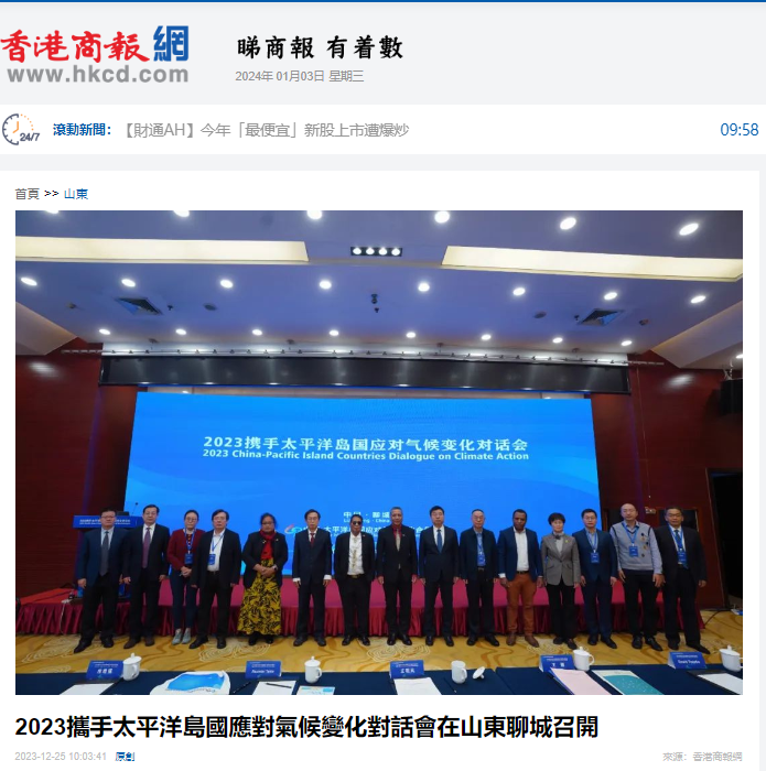 《香港商報网》2023年12月25日:《2023攜手太平洋島國應對氣候變化對話會在山東聊城召開》
