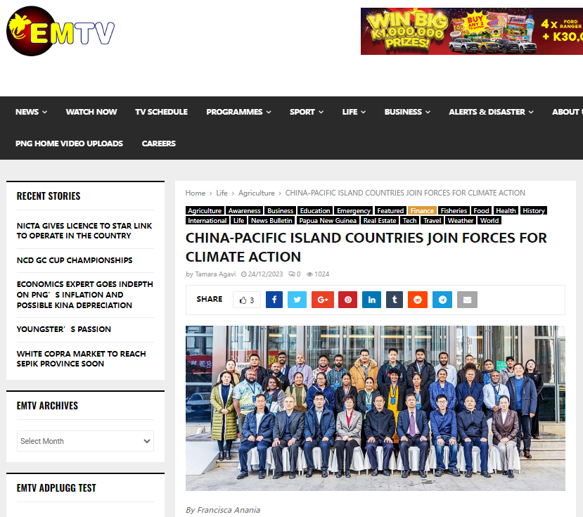 另外,巴布亚新几内亚国家新闻发布网站https://pnghausbung.com和巴布亚新几内亚最大的电视新闻网https://emtv.com.pg/ 等主流媒体及巴布亚新几内亚国家气候变化与发展管理局网站分别以“中国与太平洋岛国携手应对气候变化”、“气候公约将中国与太平洋岛国联合起来”等为题对对话会进行了深度报道。