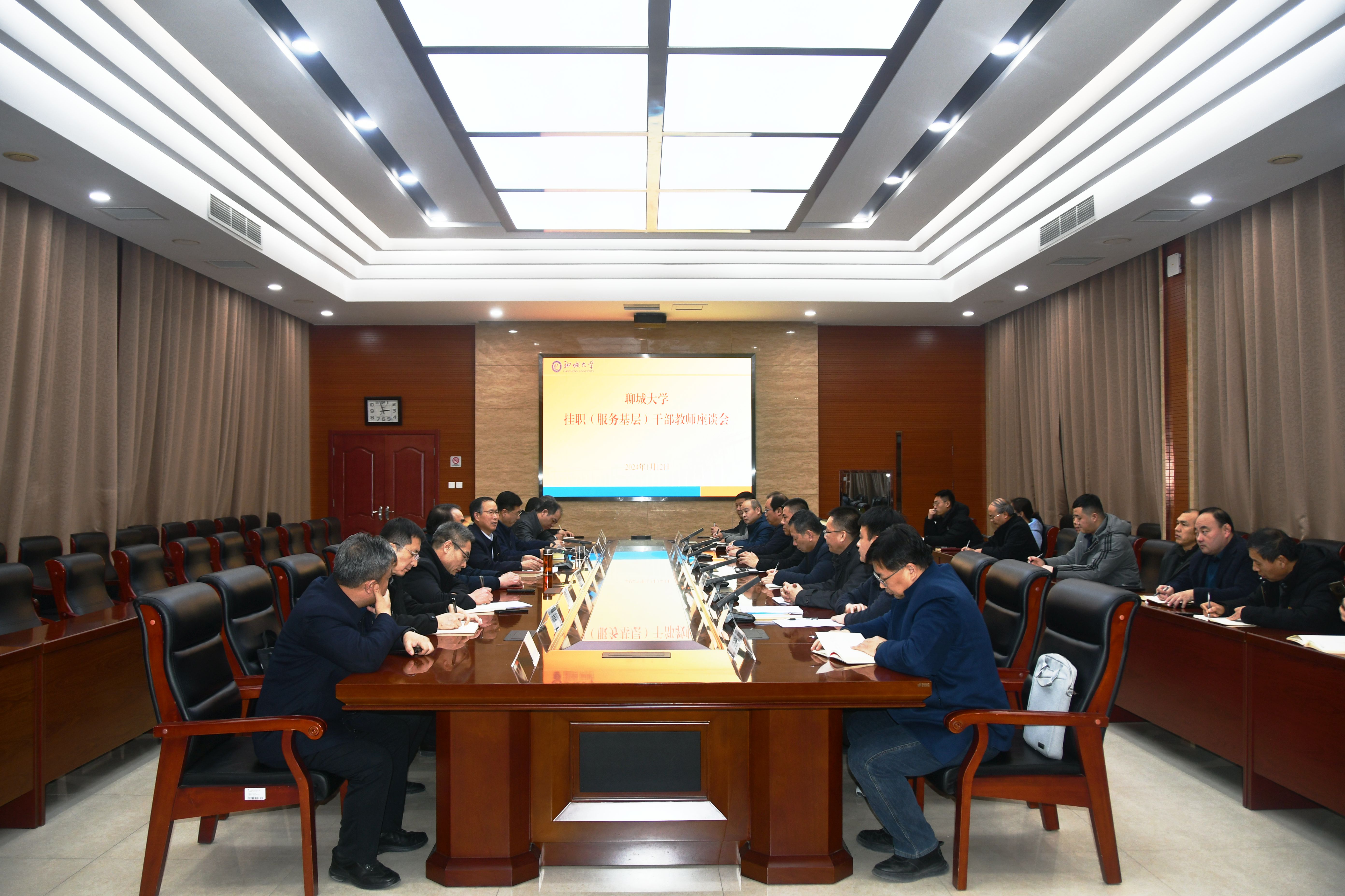 1月12日,党委副书记胡海泉主持召开挂职干部教师座谈会,交流挂职锻炼、服务基层体会收获,推动聊大干部教师在新时代现代化强省建设新征程上建新功、谱新篇。