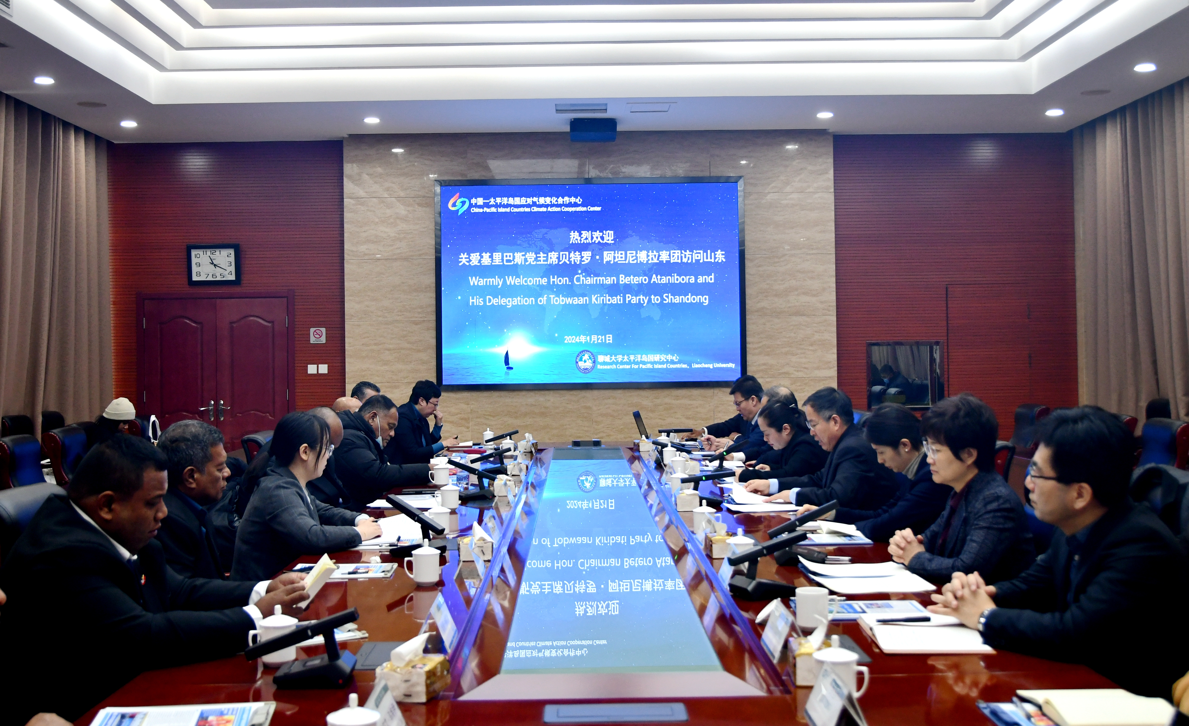 1月21日,关爱基里巴斯党主席贝特洛·阿坦尼博拉一行来我校考察访问。校党委副书记胡海泉陪同考察并与客人热情座谈。中联部处长李潇潇、省委外办美大处处长张鹏、市外办主任陈海蓉,我校国际合作与交流处、太平洋岛国研究中心、中国-太平洋岛国应对气候变化合作中心负责人参加活动。