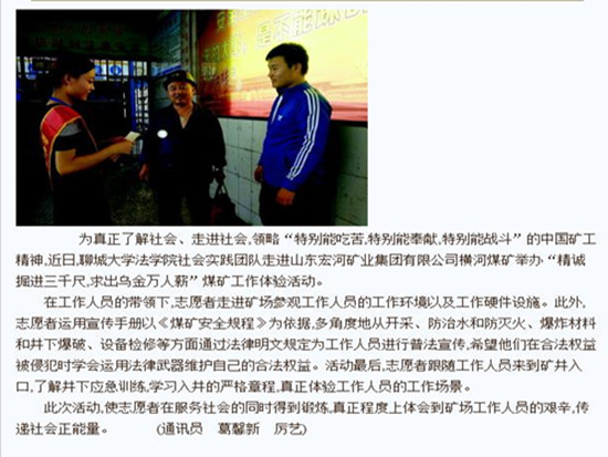 【齐鲁晚报】报道法学院开展煤矿体验活动