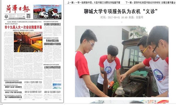 【菏泽日报】报道汽车学院“农机医生”社会实践活动